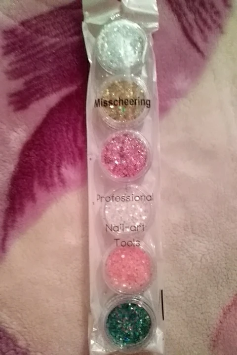 This is a nice mix of glitters. There is a large octagon shape and small flakes mixed in. I used the pink glitter on the tips of my nails in the nail art picture I included in this review.